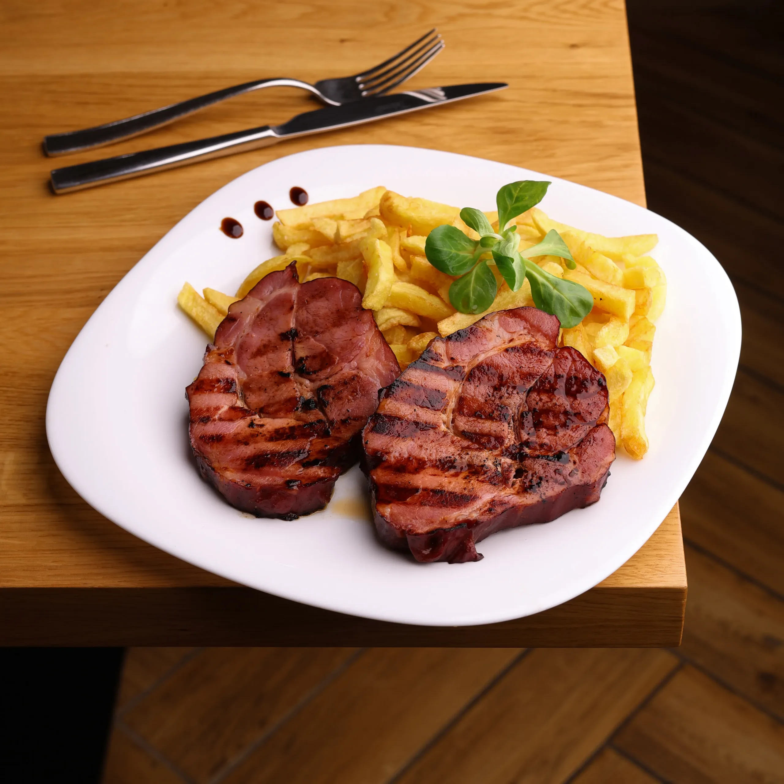 Ceafă afumată cu garnitură și salată